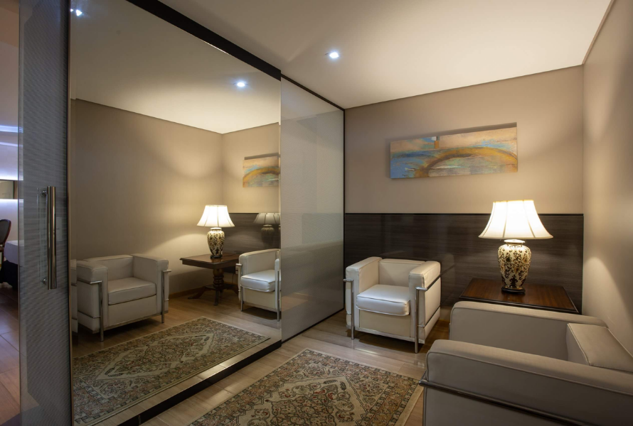 As Suítes Premium oferecem 62m² de luxo em dois ambientes, com varanda vista piscina, banheira de hidromassagem, cama king, TV 42’’ e comodidades pensadas para uma estada sofisticada.